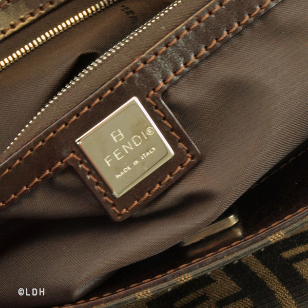 This authentic pre owned Fendi Zucca Tote Bag comes features the classic mono Fendi pattern. Silver hardware, a snap closure and a spacious interior with a zipper compartment. A Fendi lover's dream!Authentic: Pre Owned