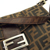 This authentic Fendi baguette features luscious black velvet, an adjustable leather shoulder strap, and a silver tone Fendi button closure. The interior is spacious. Own this iconic Fendi handbag.Authentic: Preowned
