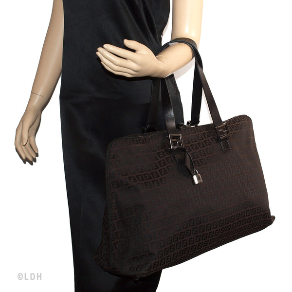 This authentic Fendi Zucchino Pattern Shoulder Bag features monogram canvas in black.