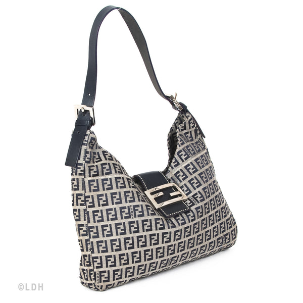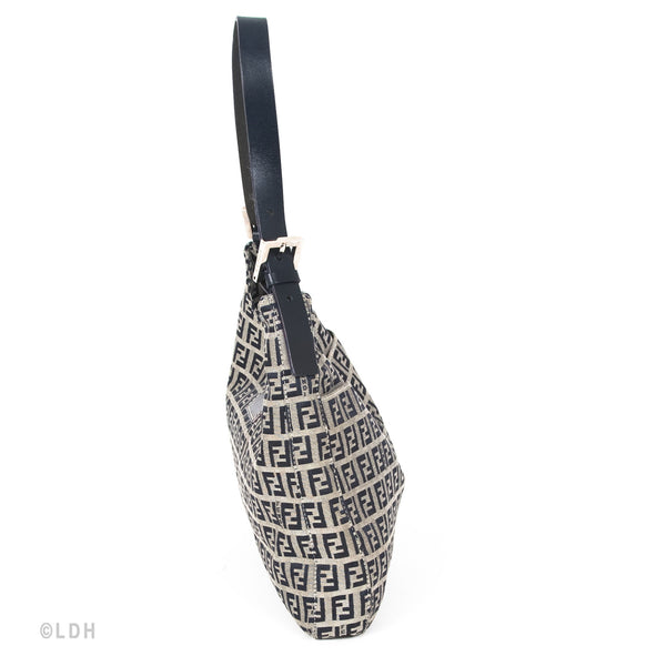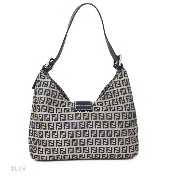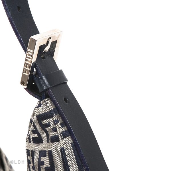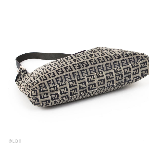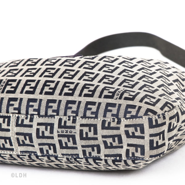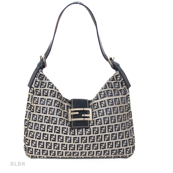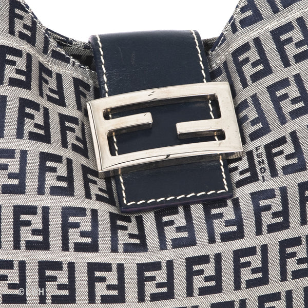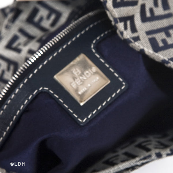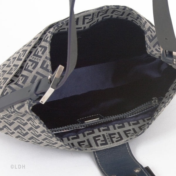 This authentic pre owned Fendi Shoulder Zuccino Bag features the classic Fendi mono canvas exterior and leather top handle with lovely silver tone hardware. Blue leather trimmings. A perfect find for the Fendi lover in you.Authentic: Pre Owned