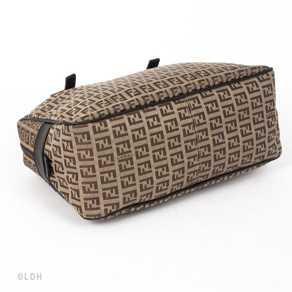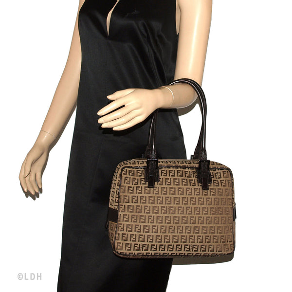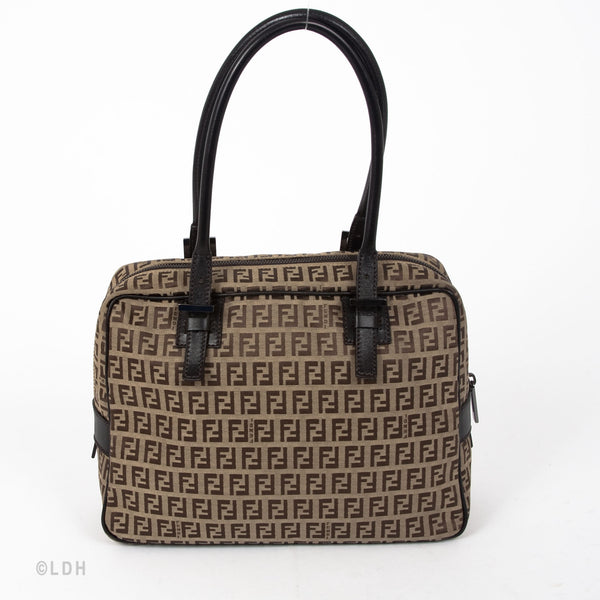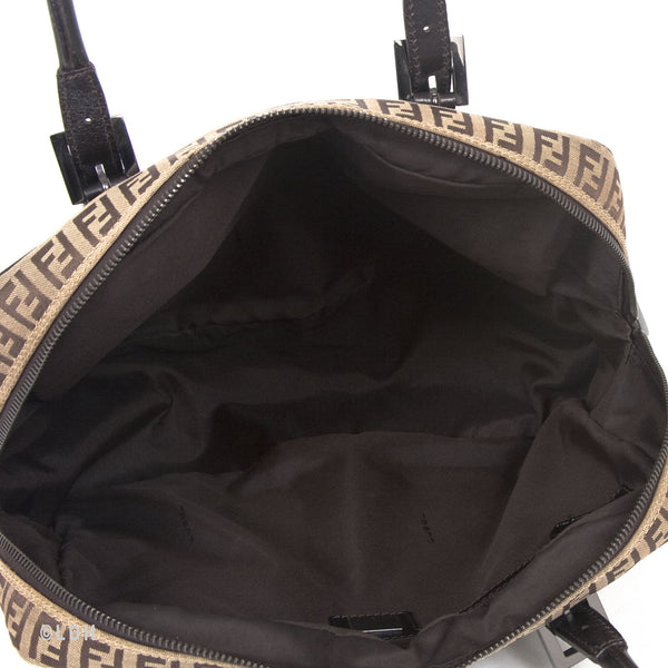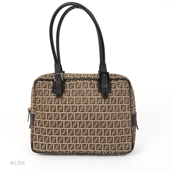 This authentic pre owned Fendi Shoulder Zuccino Bag features the classic Fendi mono canvas exterior and leather top handles with brown leather trimmings and top zip closure. A perfect find for the Fendi lover in you.Authentic: Pre Owned